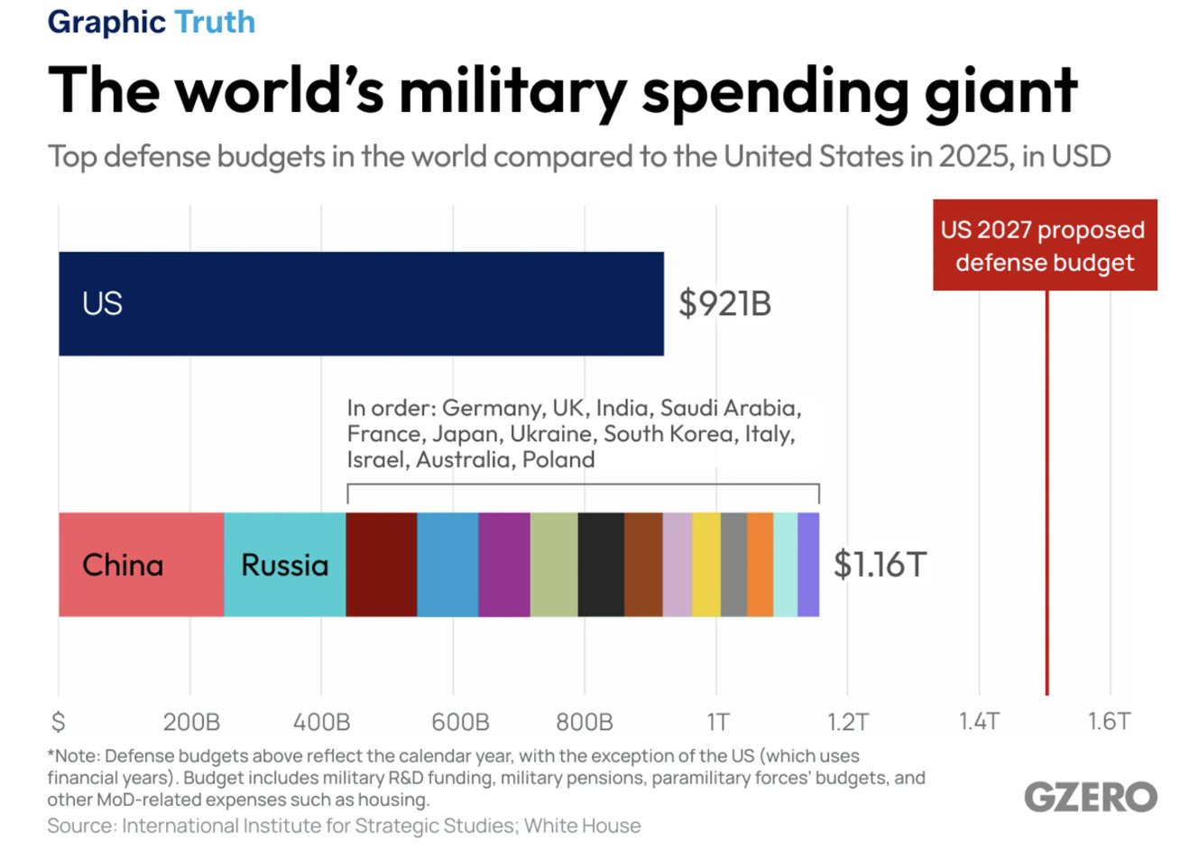 Last year, the U.S. spent $921 billion on defense, more than the next eight countries combined.