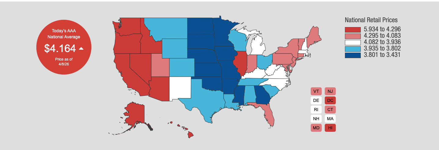 Meanwhile, the average U.S. gas price stood at $4.16, according to AAA.