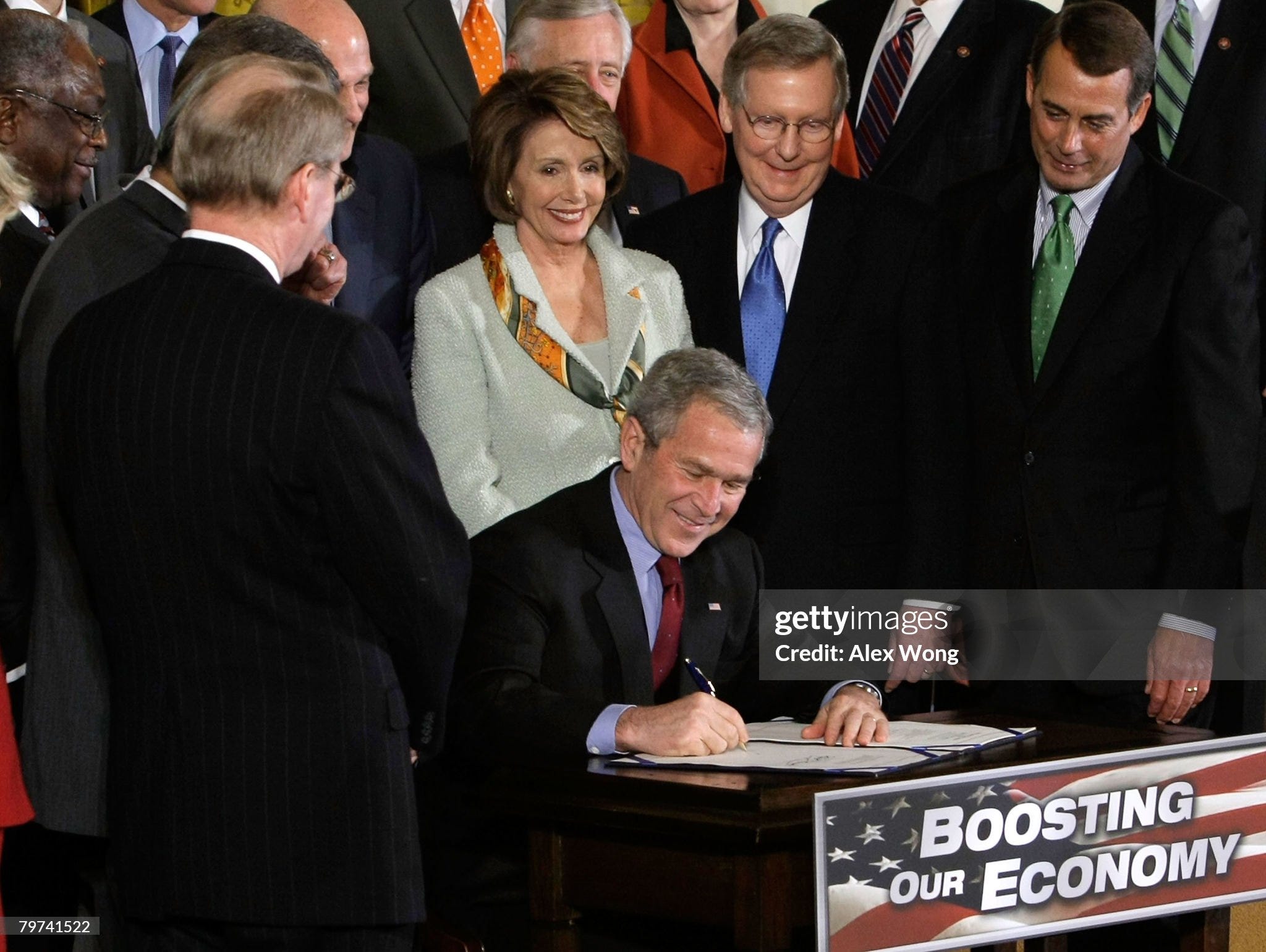 -On this day in 2008, President George W. Bush signed the Economic Stimulus Act into law in a bid to boost consumer demand.