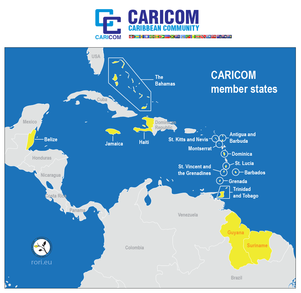 The bloc was founded in 1973 and seeks to foster economic and political cooperation across the region. It has fifteen full member states and 5 associate members.
