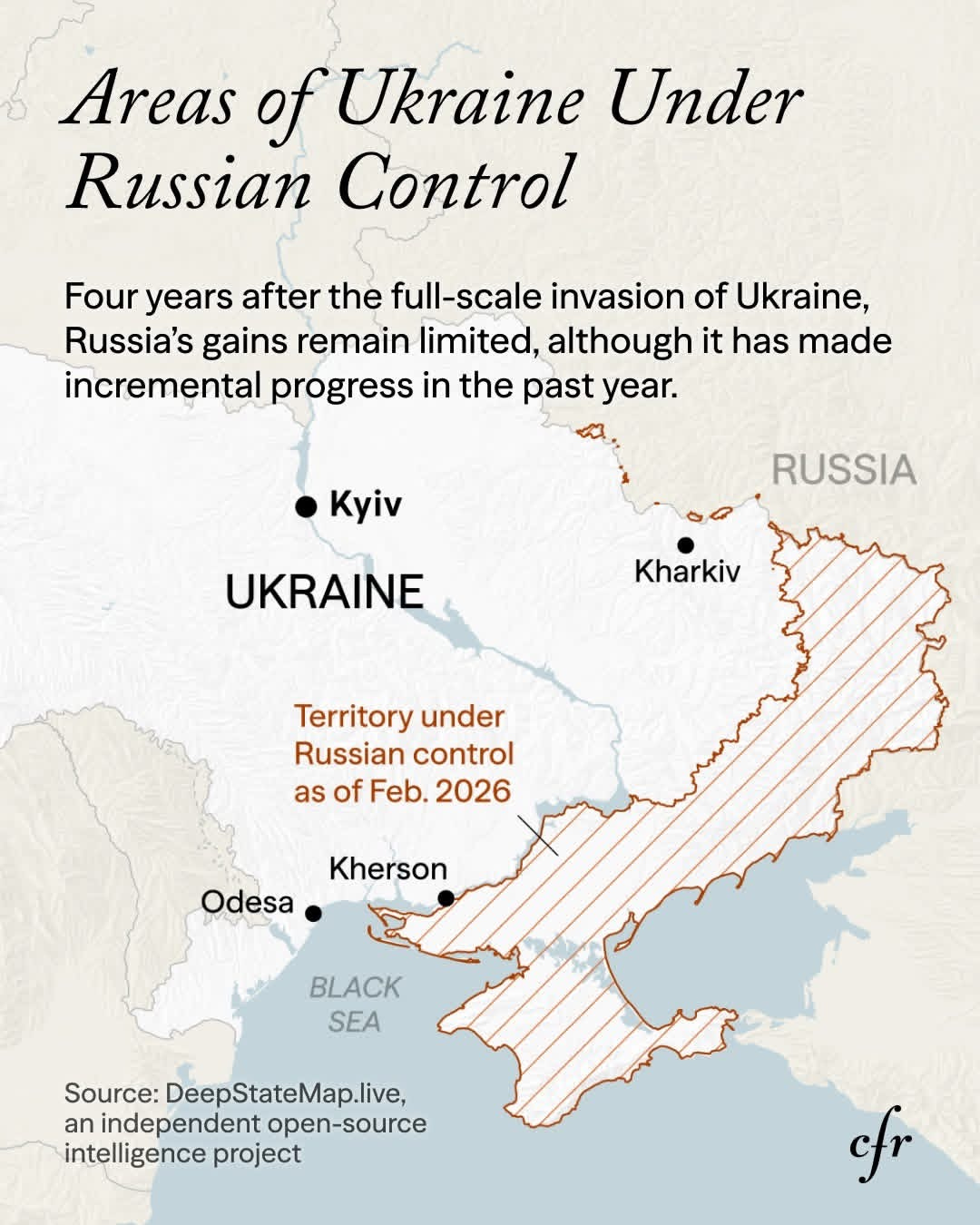 As the war enters its fifth year, Russia now controls approximately 19.4% of Ukraine’s territory.