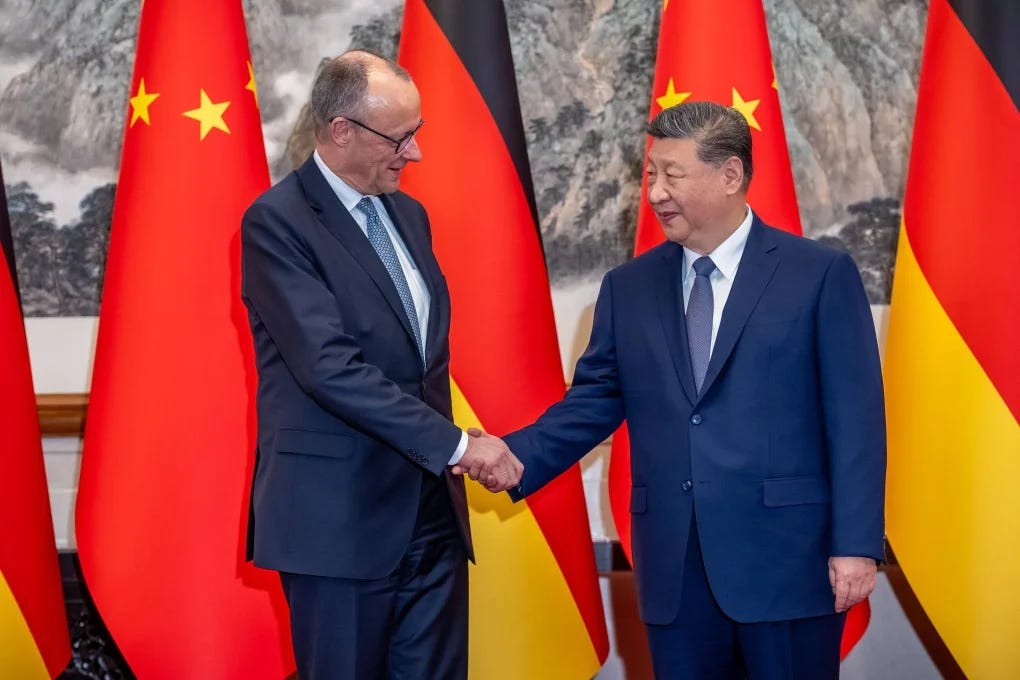 -Chinese President Xi Jinping hosted German Chancellor Friedrich Merz in Beijing yesterday for bilateral talks.