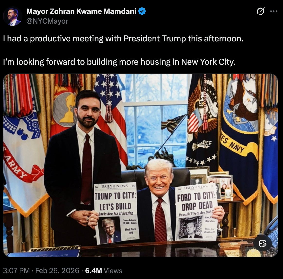 In a post to his social media following the previously unannounced meeting, Mamdani said he was “looking forward to building more housing in New York City.”