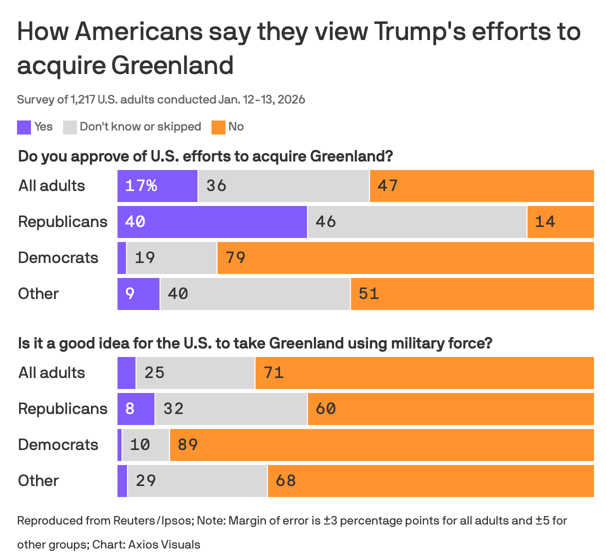 For once, we disagree; it does not strike me that the country is divided on the issue of Greenland. The forty per cent approval rate within my erstwhile party likely reflects the Trump-base only.🫱🏻🫲🏽