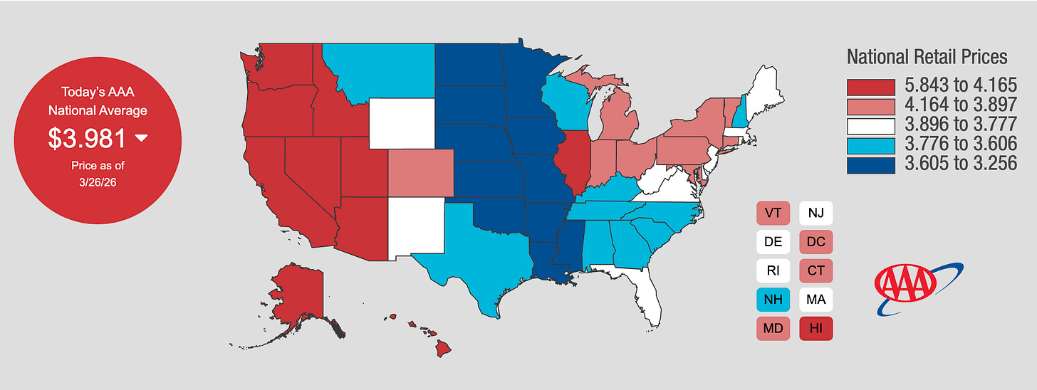 Meanwhile, the average U.S. gas price stood at $3.81 yesterday amid the ongoing war in the Middle East, according to AAA.