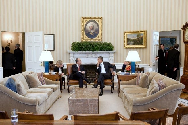 In 2009, President Barack Obama hosted Caroline Kennedy Schlossberg, the daughter of President John F. Kennedy, in the Oval Office.