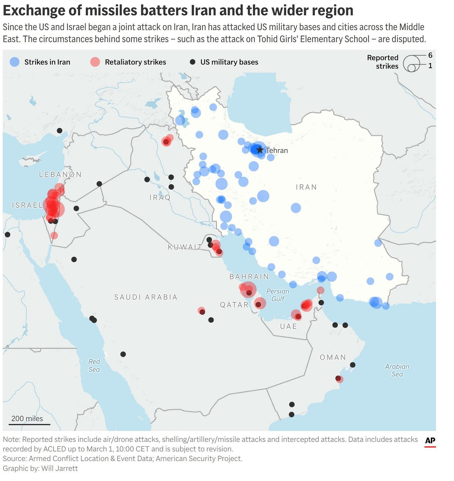 -U.S. and Israeli strikes on Iran continued yesterday, with the conflict expanding to Lebanon after Iranian-backed Hezbollah launched strikes on Israel.