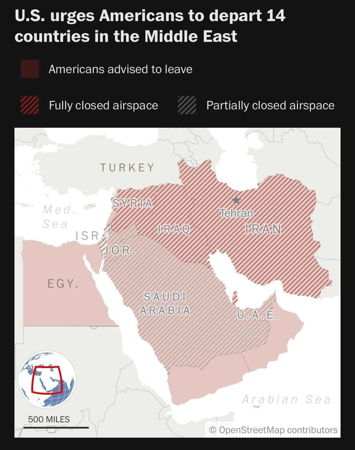 -The State Department urged Americans in 14 countries in the region to depart.